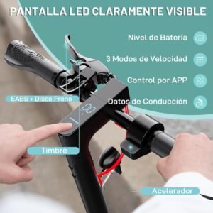 Besondere Merkmale 3 Geschwindigkeitsmodi, APP-Steuerung, Dämpfungssystem, DGT-Zertifizierung, Klappbar, Maximale Belastbarkeit 120 kg, 2 Gummiräder, Aluminiumrahmen, Feststehender Lenker
